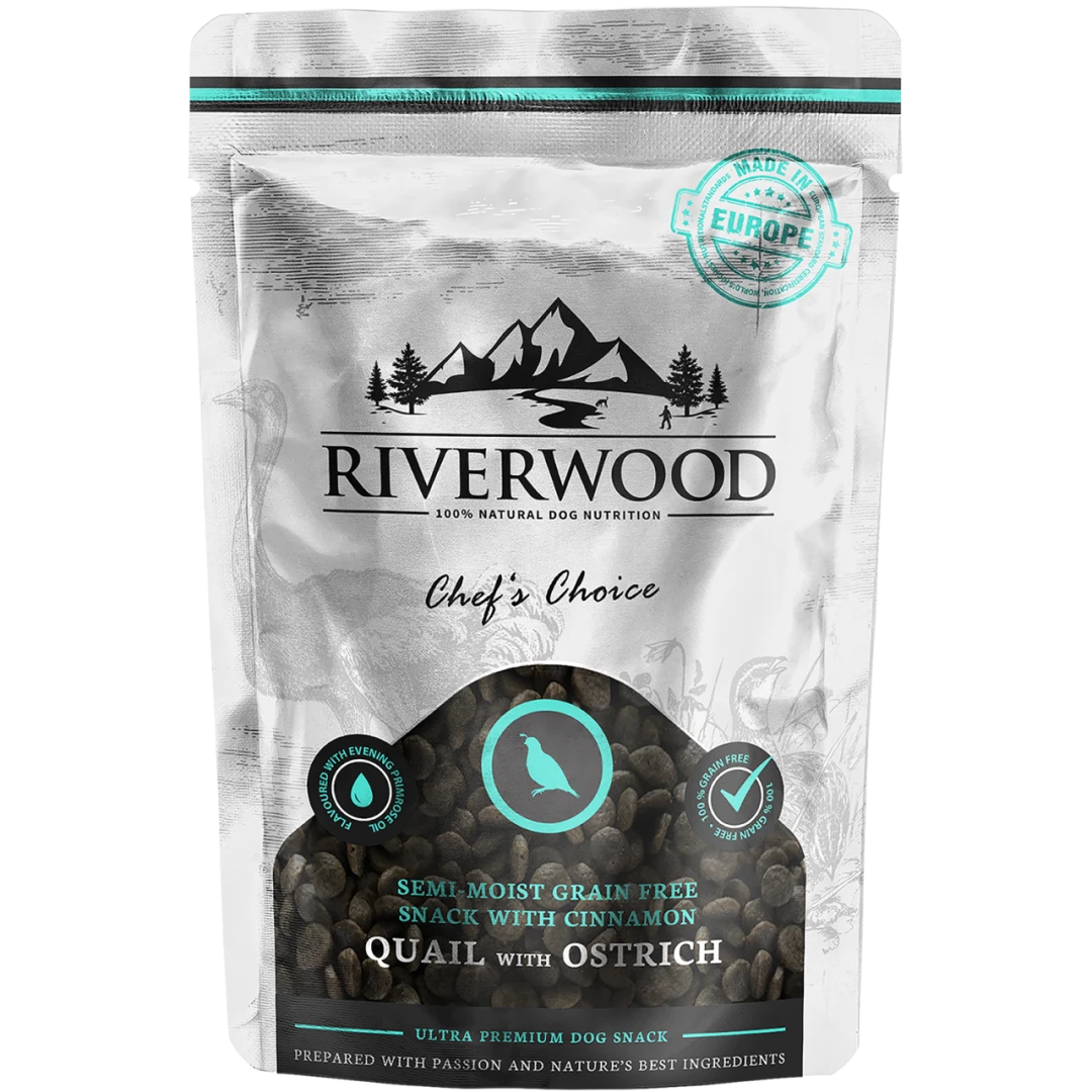 Riverwood Chefs Choice Quail & Ostrich semi-moist is een natuurlijke, semi-moist graanvrije snack op basis van kwartel en struisvogel en is geschikt voor volwassen honden van alle rassen.
