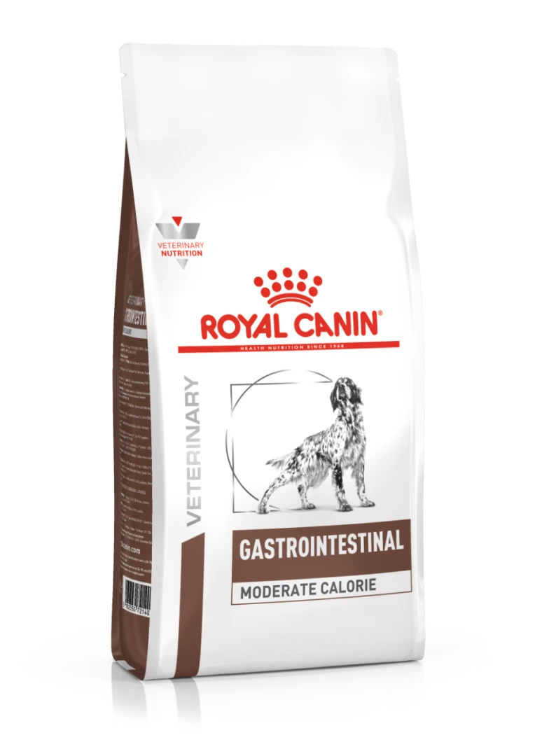 Royal Canin hondenvoer GastroIntestinal Moderate Calorie is een speciale dieetvoeding die de spijsvertering en een gezond gewicht van je hond ondersteunt. Moet je hond regelmatig braken of heeft hij last van diarree? Bij maagdarmaandoeningen of spijsverteringsproblemen kan je dierenarts een speciale voeding adviseren om de spijsvertering te ondersteunen. Problemen met de spijsvertering komen regelmatig voor bij honden. Dit kan behoorlijk vervelend zijn voor je hond!