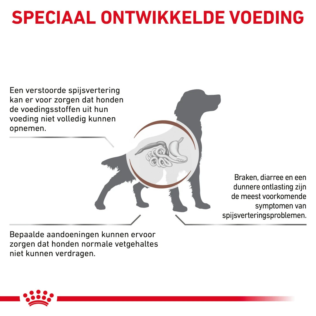 Bevorder de spijsvertering van jouw hond met Royal Canin hondenvoer Gastrointestinal Low Fat.Royal Canin Hondenvoer Gastrointestinal Low Fat is een speciaal samengestelde voeding voor honden ter regulering van het vetmetabolisme bij hyperlipidemie.
