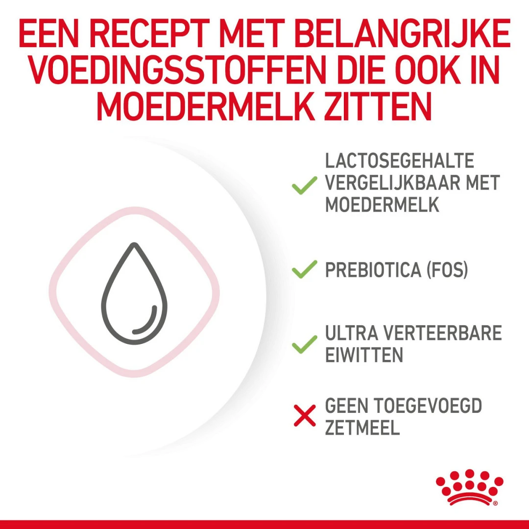 Royal Canin Babycat Milk is een uitstekend alternatief voor moedermelk, omdat het beschikt over soortgelijke eigenschappen. Dit in tegenstelling tot koemelk.