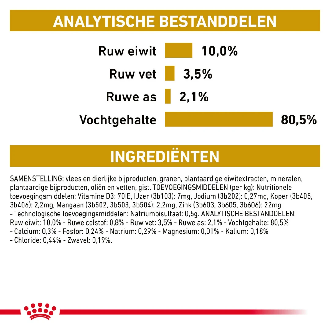 Samenstelling: vlees en dierlijke bijproducten, granen, plantaardige eiwitextracten, mineralen, plantaardige bijproducten, oliën en vetten, gist.