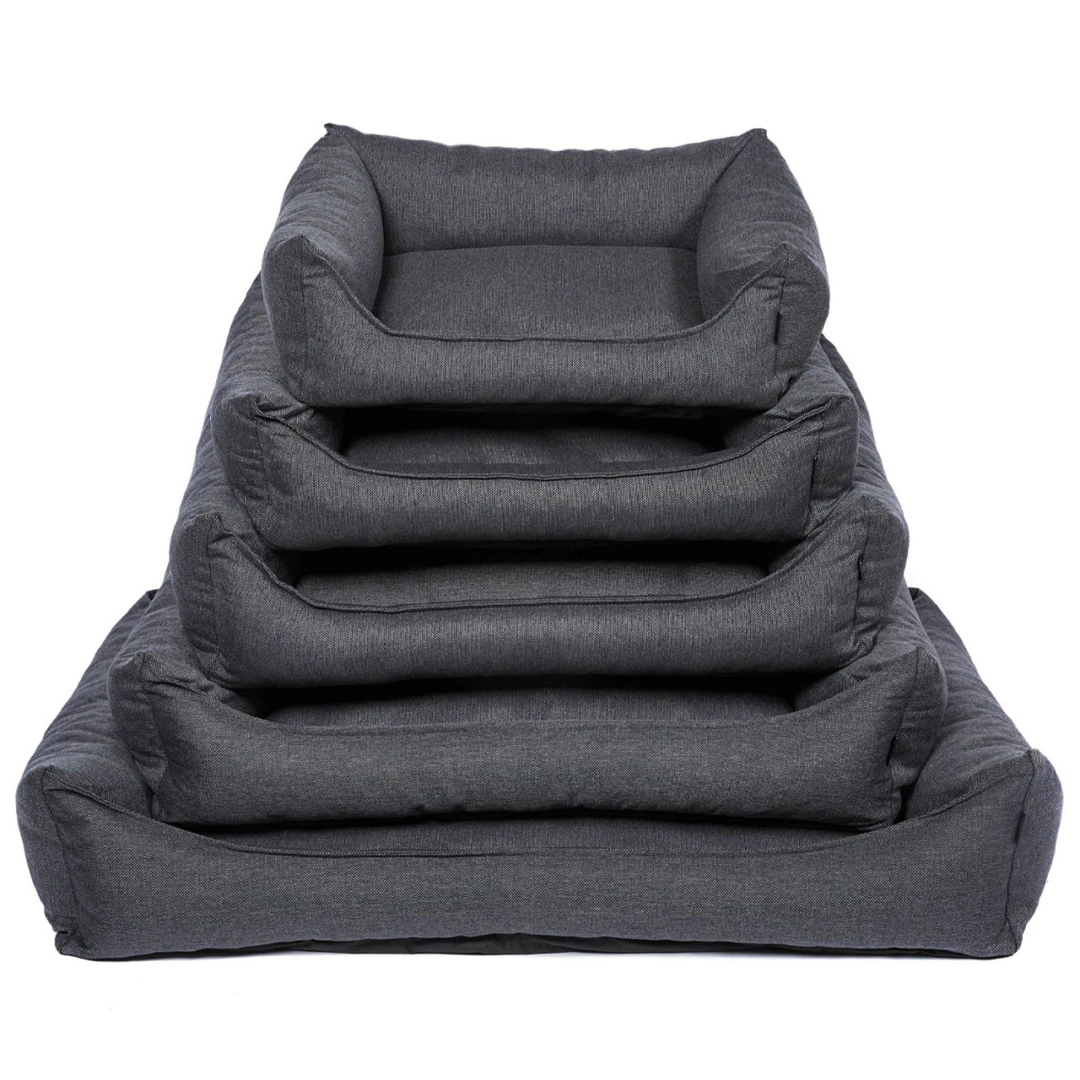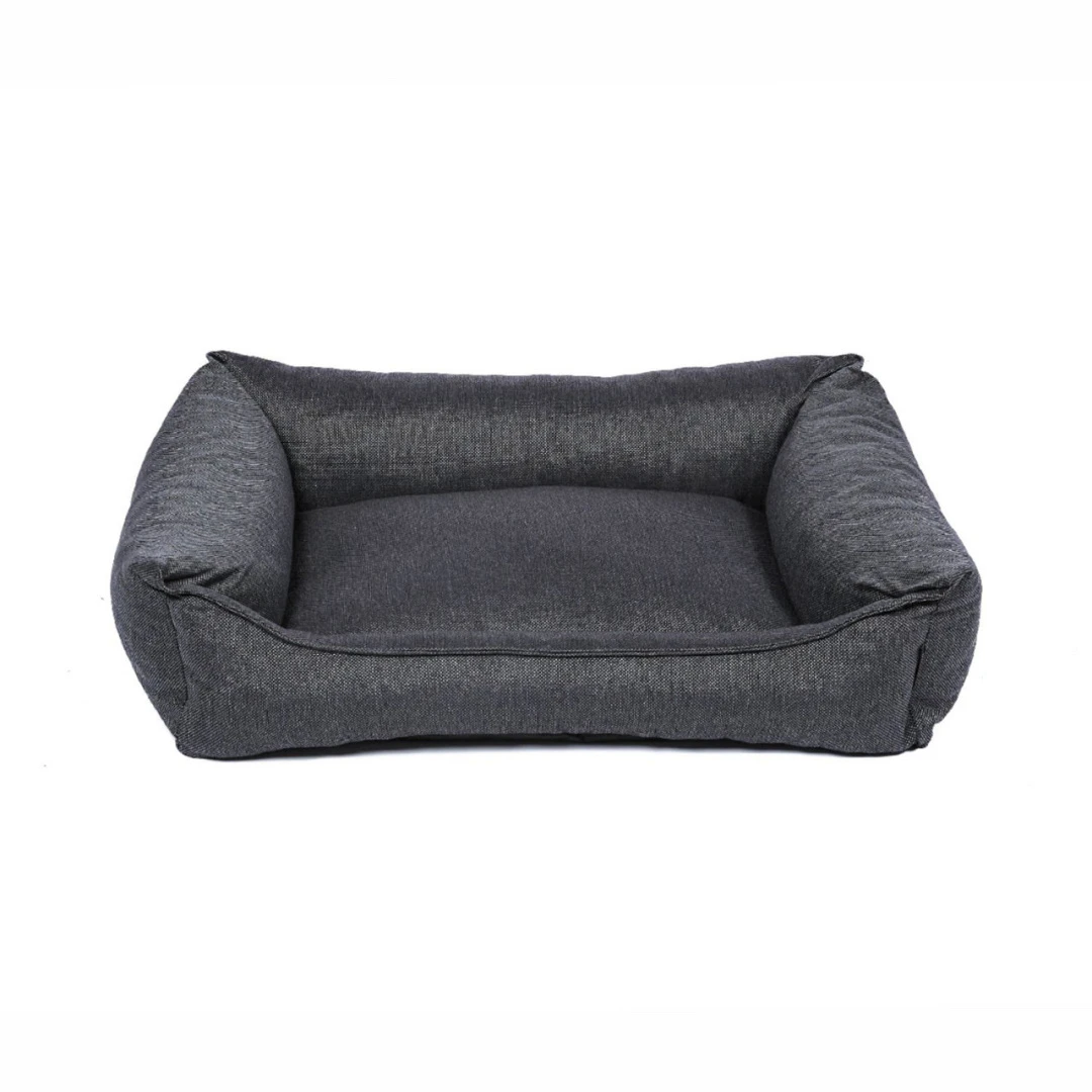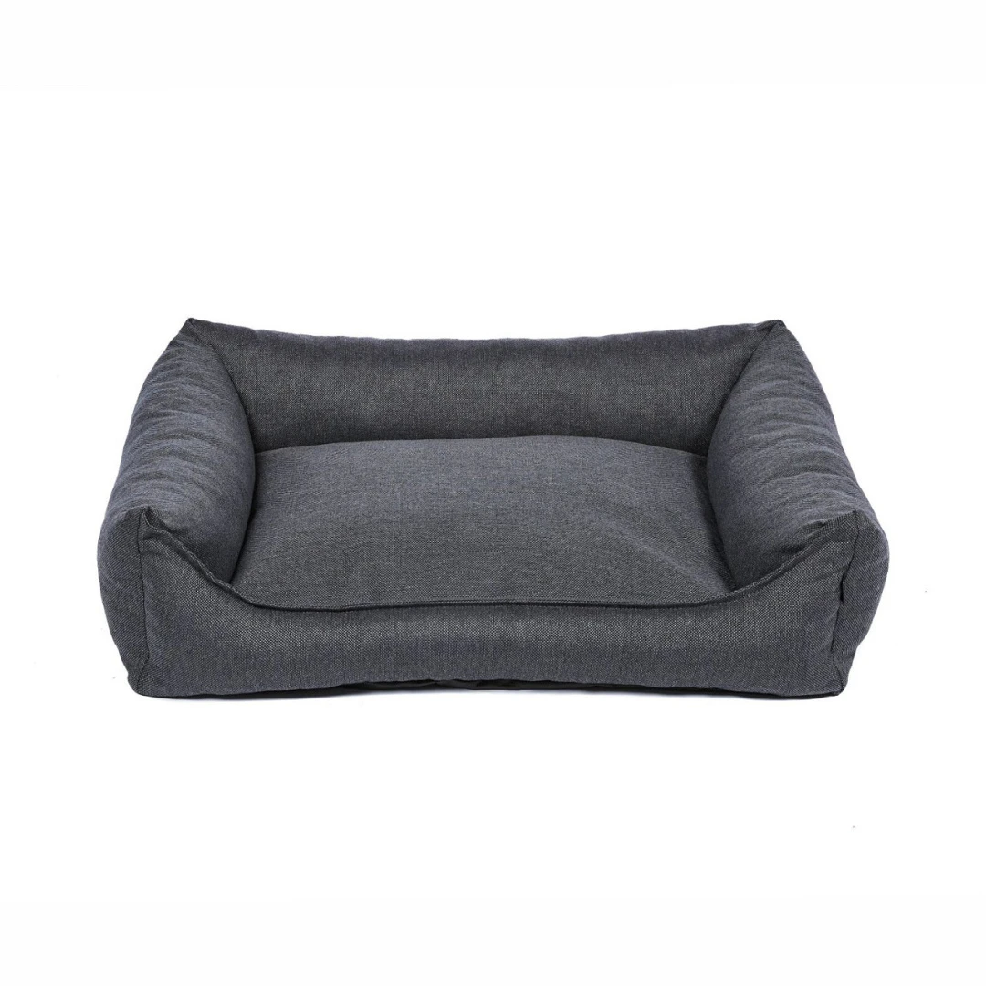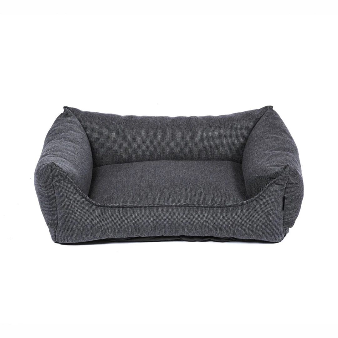 Het slijtvaste materiaal heeft een gemêleerde kleur en geeft de hondenmand een speelse doch chique touch. De stevige vulling van gemalen memory foam zorgt voor optimale ondersteuning en slaapcomfort. De hoes is wasbaar op 30 graden.