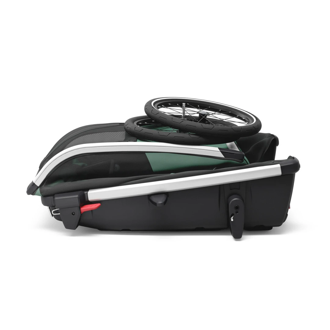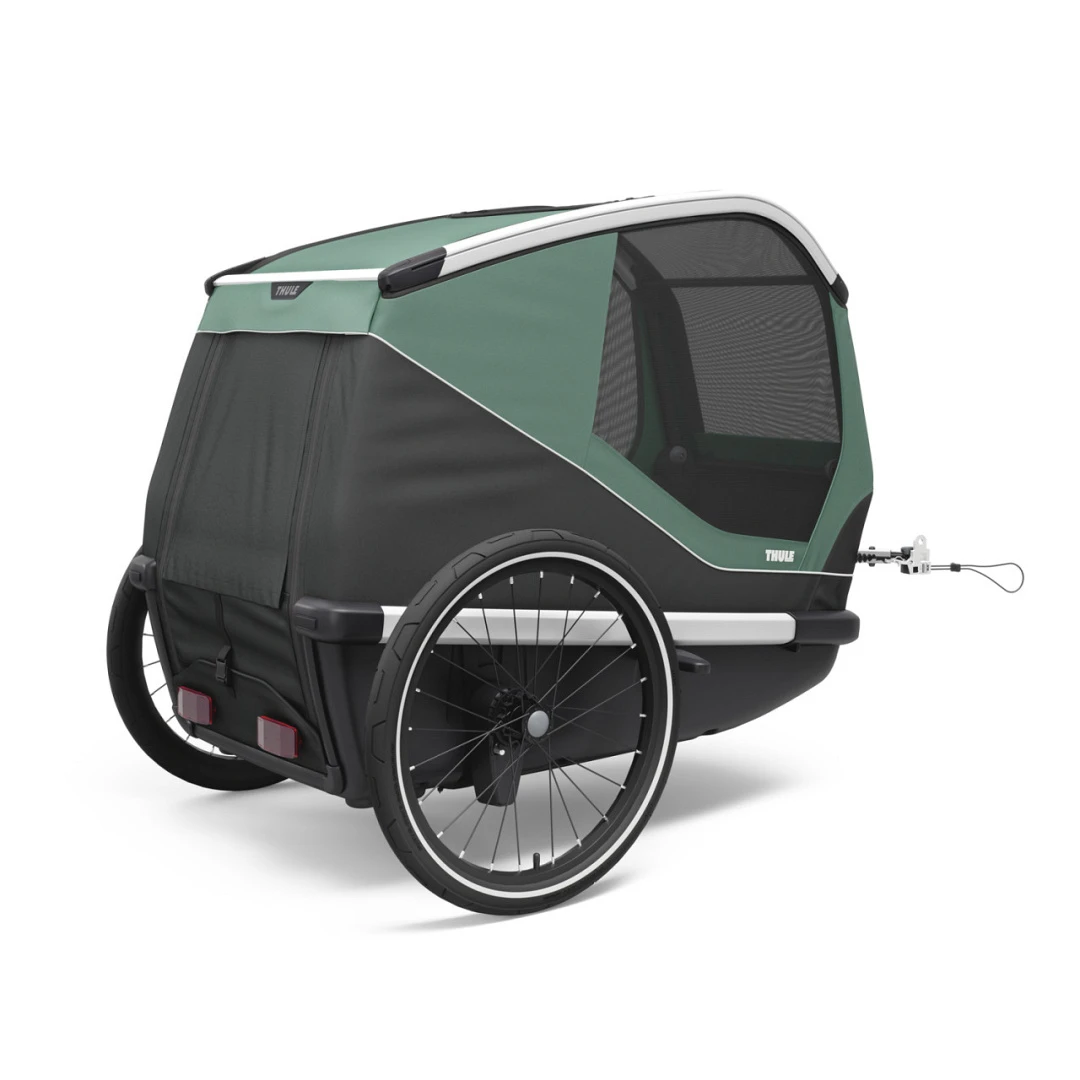 Door de wielen en de stang te verwijderen kun je de wagen stevig op de grond plaatsen zodat jouw hond goed kan wennen aan de fietskar. De montage aan de fiets is in een mum van tijd gebeurd door de nieuwe Thule fietskoppeling. De wagen is eenvoudig inklapbaar voor bv opslag of transport.