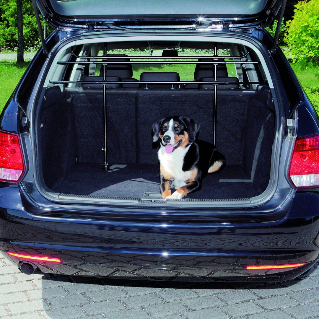 Het TRIXIE 2-delig autorek is gemaakt van gepoedercoat metaal en heeft schuine verticaalstangen die gebruik van de gehele kofferbak mogelijk maken.