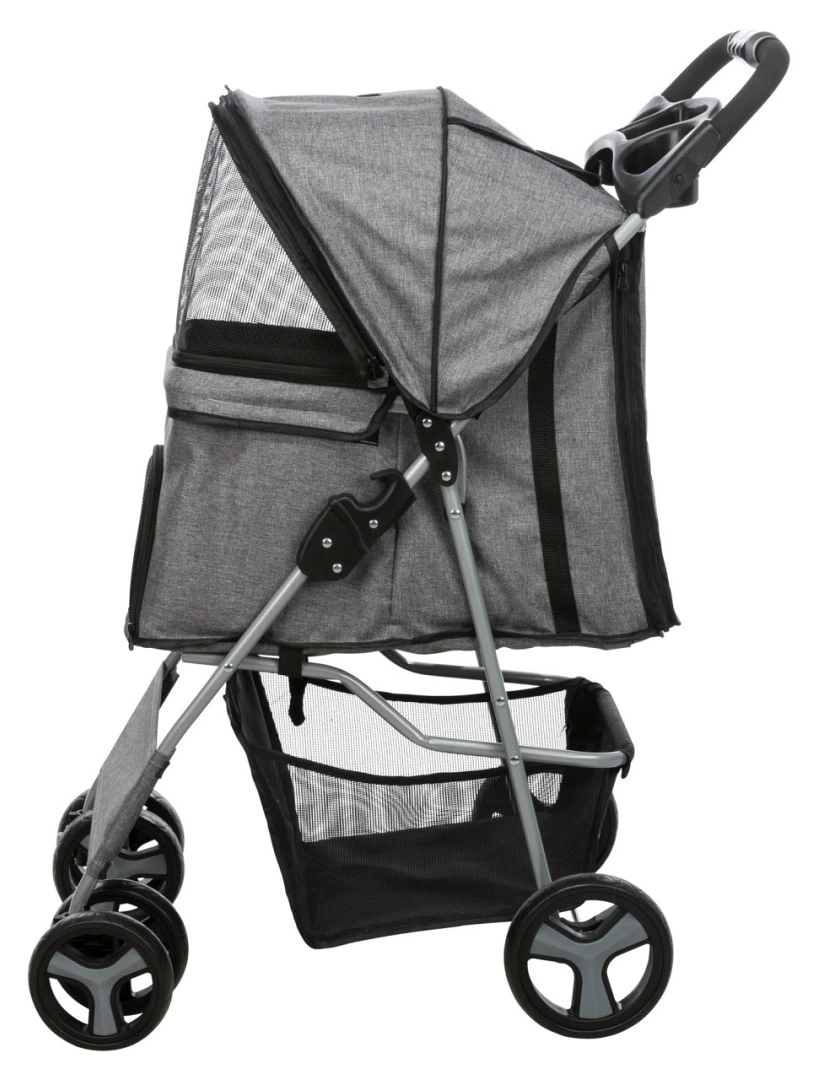 De TRIXIE Hondenbuggy is uitgerust met 2 parkeerremmen om de buggy stevig op zijn plaats te houden wanneer dat nodig is. De grote achteringang maakt het gemakkelijk voor je huisdier om in en uit te stappen, en dankzij de ritssluitingen is de buggy deels of geheel afsluitbaar. De diverse gaas-inzetstukje zorgen voor ventilatie. Bovendien zijn er 2 korthouders inbegrepen om je huisdier veilig in de buggy te houden.