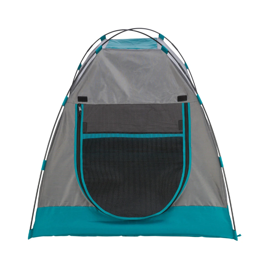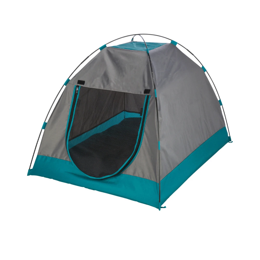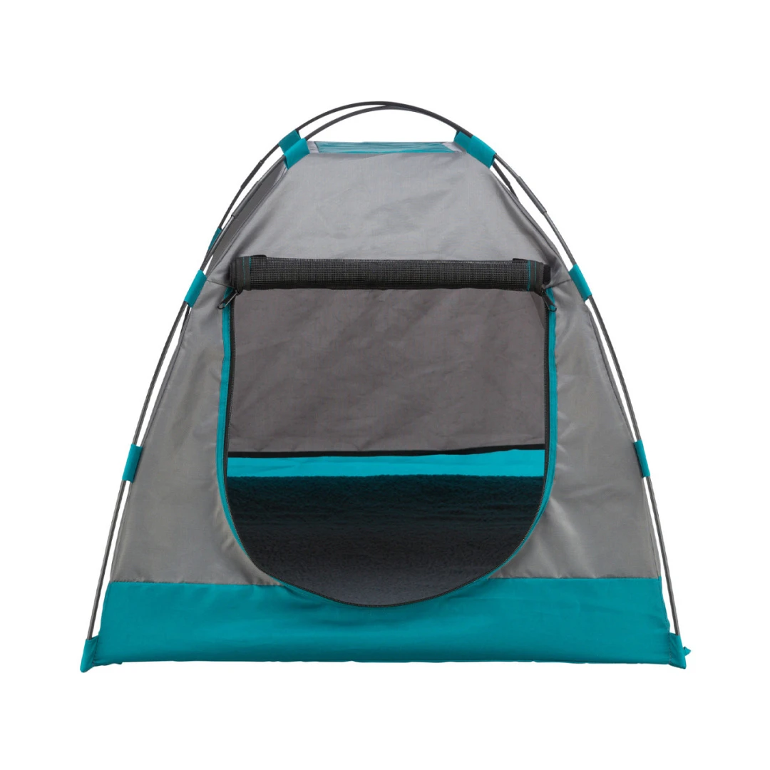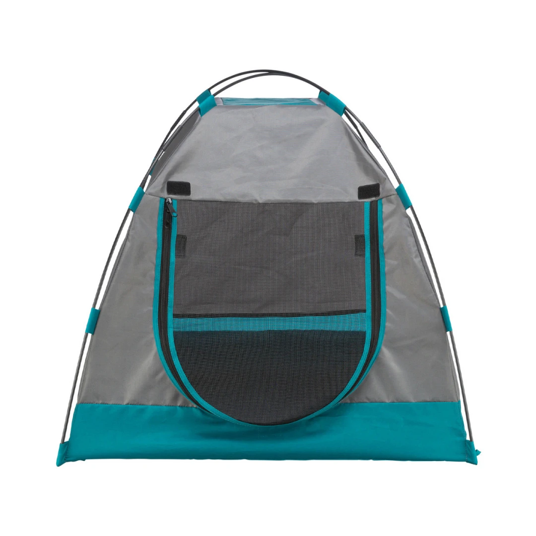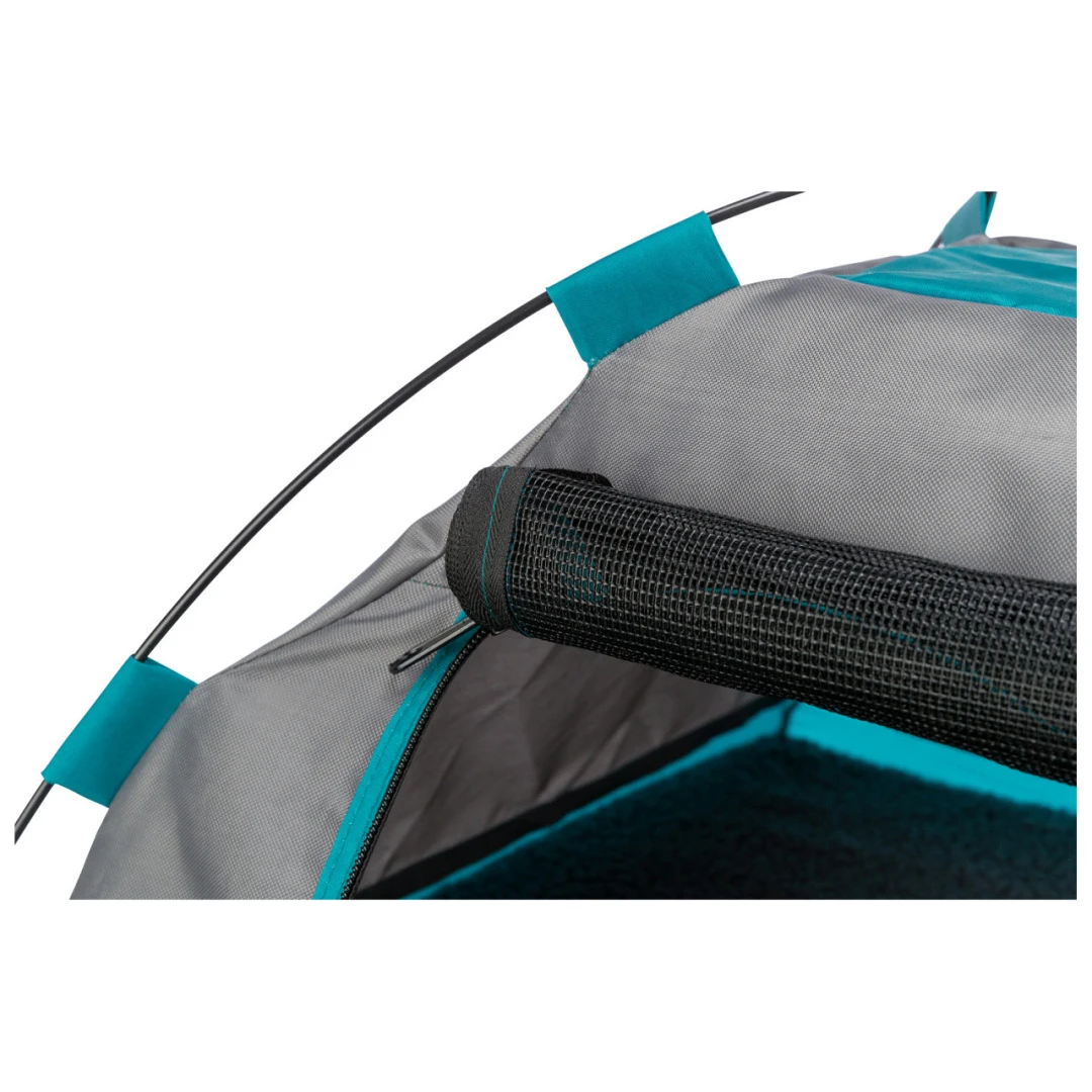 Hondentent met een netingang die afsluitbaar is met een rits. Aan de achterzijde zit een ventilatierooster. Inclusief verwijderbare mat met schuimvulling voor extra comfort. De hoes van de mat is afneembaar d.m.v. een ritssluiting.