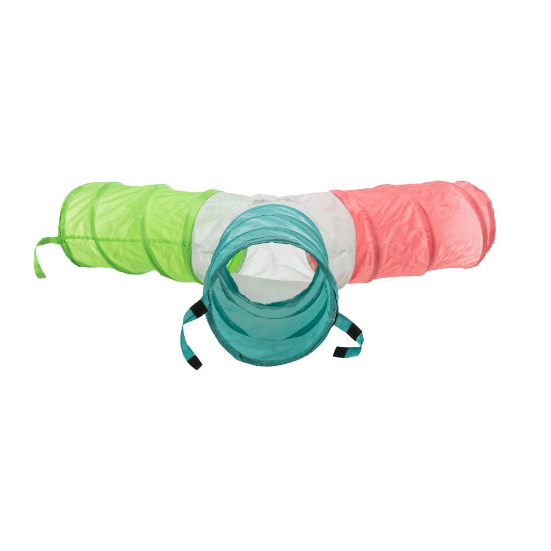 Trixie speeltunnel Dwergkonijn 4 uitgangen is een vormvaste, nylon speeltunnel met drie gangen en vier openingen. Konijnen en cavia’s verstoppen zich graag, en dat gaat prima in deze leuke tunnel. Uit te breiden met meerdere tunnels.