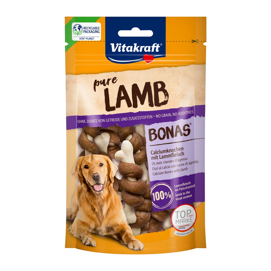 Met de hondensnack Lamb Bonas van Vitakraft kan jouw hond genieten van heerlijke calciumbotjes bedekt door lamsvlees. De hondensnack is rijk aan eiwitten en is vrij van graan, soja, ei en vleesmeel. Een onweerstaanbare snack voor elke hond!